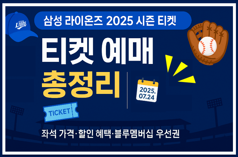 2025 삼성 라이온즈 티켓 예매 총정리! 예매 시간, 가격, 좌석 정보부터 할인 혜택과 수령 방법까지 한눈에 확인하세요.