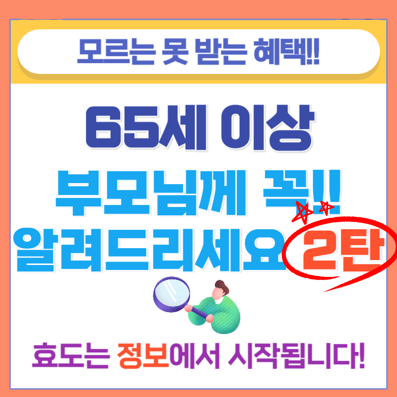 65세 이상 혜택은 이미 주어져 있는데 몰라서 못 받으면 무조건 손해입니다.